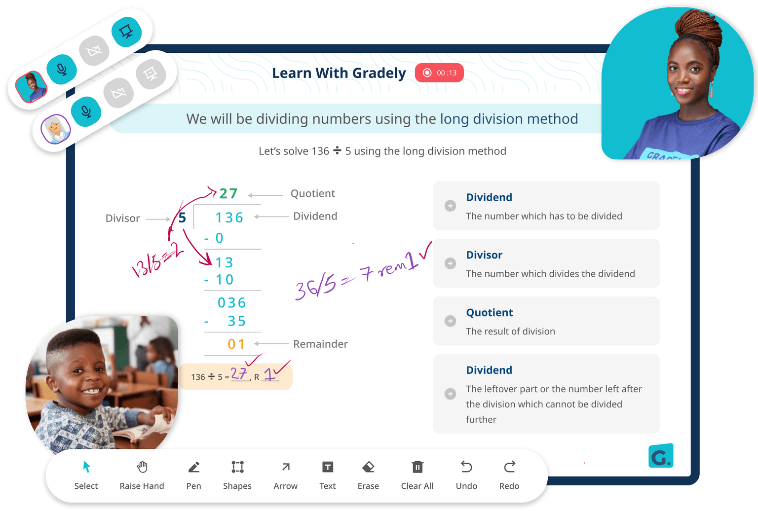 Gradely uses curriculum aligned assessments and technology to detect your child's learning gap and tailor live classes and other resources to address this